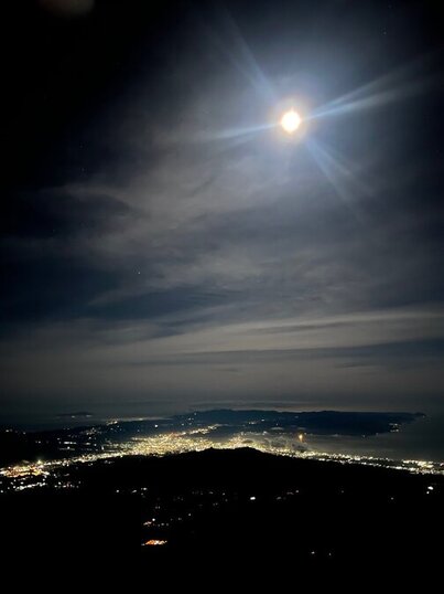 ↓↓↓ 雨が過ぎ、8合目のセンターから臨む澄んだ夜空と夜景